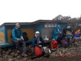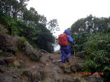 | 子供の頃から親しんでいた磐梯山は何時か登りたいと思っていた山の一つでした。 前日の夜は大雨でしたが朝起きたら青空が出ていたので得意になって出発しました、然し登り始めて暫くすると雨が降り始め7合目あたりからは強風が吹き出し立って歩けず這って登りました、白馬岳以来の怖い経験をしました、頂上でむすびを一つ頬ばり急いで裏磐梯高原に下山しました、宿でゆっくり温泉に入り心と体を癒しました、又一つ貴重な経験をした山旅でした。 |