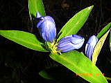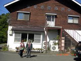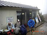| 山頂の小屋陰で昼食 | リンドウの蕾 | 中腹の売店「岡部小屋」 | 赤い木の実、名前? | 売店「弘法小屋」 |