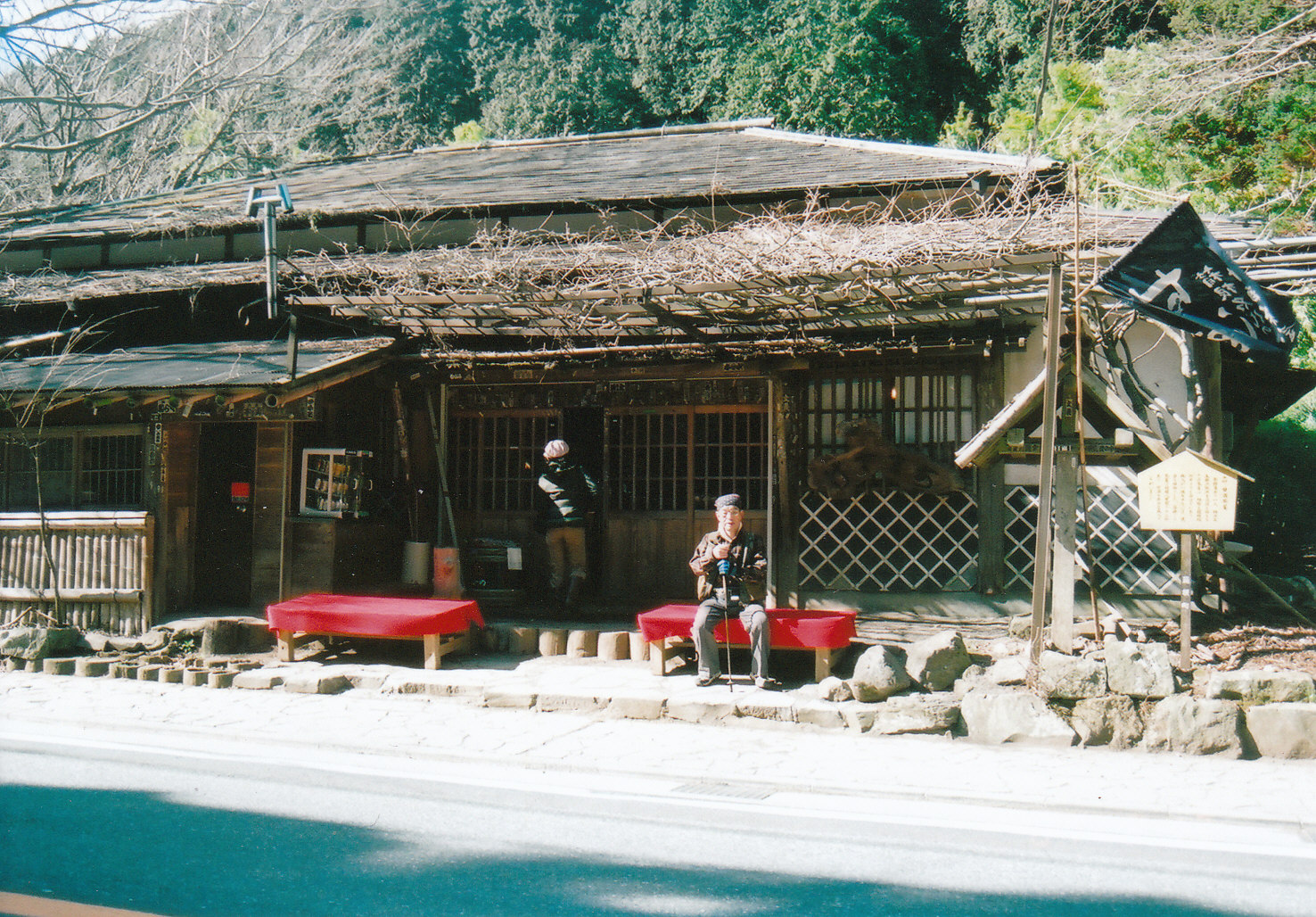 | 「甘酒茶屋」正面 | 「甘酒茶屋」縁台 | 「甘酒茶屋」の中 | 「於玉坂」の碑 | 杉並木の旧街道 |