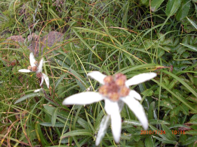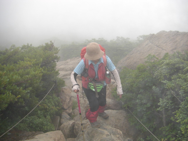 | 妻が以前から「早池峰ウスユキソウを見に行きたい」と言っていましたから今夏出かけました。 梅雨明けを待って土曜日に登りましたから予想通リ大勢の登山者で賑っていました。シーズン中休日だけ登山口まで出るシャトルバスで早朝(5:32)出発しましたがバスに乗りきれない人が出るほどでした。 ガスが出て余り見通しのきかない中登山道(6:10)に取り付き暫く平らな木道歩きでしたが木道が終わると次第に勾配を増しゴ―ロの坂となりました、雨は降りませんが霧雨で岩は濡れて滑り易く気の抜けない登山でした。 樹林帯を抜けると所々岩の隙間や陰に「ハヤチネウスユキソウ」が咲いていました、夢中で写真を撮りましたが上に行くほど沢山あって花を選んで撮るようになりました。 ここでも強風が吹き時々岩陰で風を避けながら登りましたので時間が掛り頂上に着いたのは(8:50)でした、頂上には20人位の人達が祠や岩陰で休んでいましたので私たちも小休止してから下山しました。 下山を始めると小雨が降り始めたので益々岩が滑り易くなり慎重に下りました、一番の難所は垂直に近い鉄梯子を下りる時でした、妻も慎重に梯子を下り無事下山出来ました。 登山口着(11:15)でした、往復≒5時間です。ここで弁当を食べ帰りは花巻駅直通のシャトルバスで帰り花巻駅で乗り換えて花巻温泉の奥座敷「台温泉」の宿「観光荘」に(14:20)チェックインしました。 開湯1.200年の歴史あるかけ流しの温泉に入り汗と疲れを流しその夜はゆっくり休んで翌日「新花巻駅」(10:22)[やまびこ50号]で帰路に着き,自宅着(15:00)でした。 |