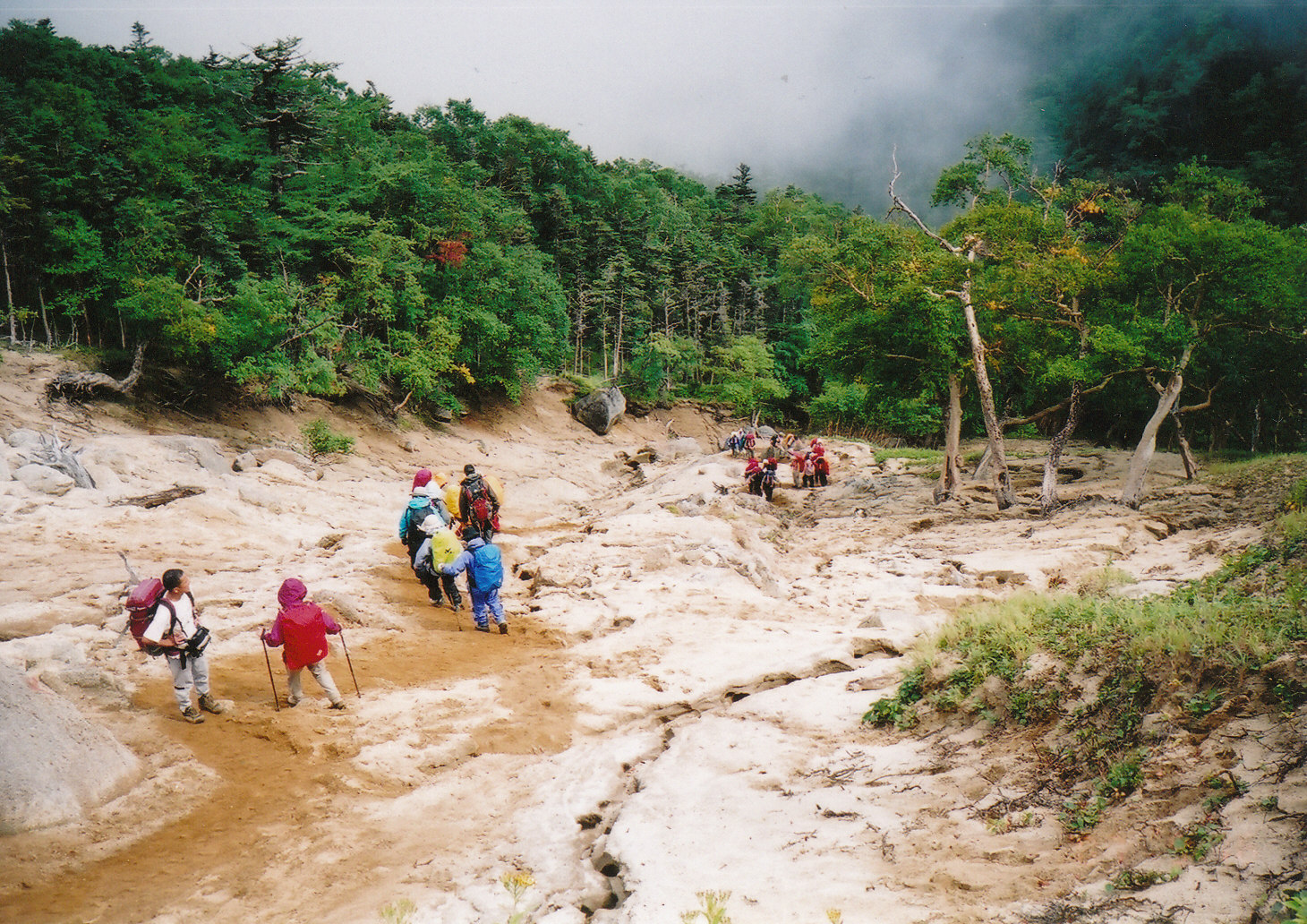 他の縦走は雨に降られましたがこの縦走は時折小雨程度で殆ど晴れたり曇ったりで余り風も無く穏やかな登山日和でした。然し下山途中「本澤温泉」直前でコケ左足の膝を痛め帰り駅の階段を登るのに難儀しました。登山そのものは楽しいものでしたが最後大きな汚点を残して残念でした。又一つ貴重な経験をしました。