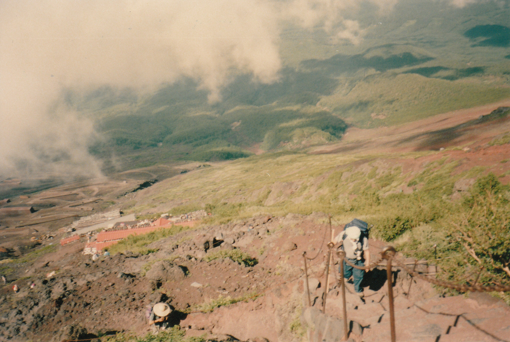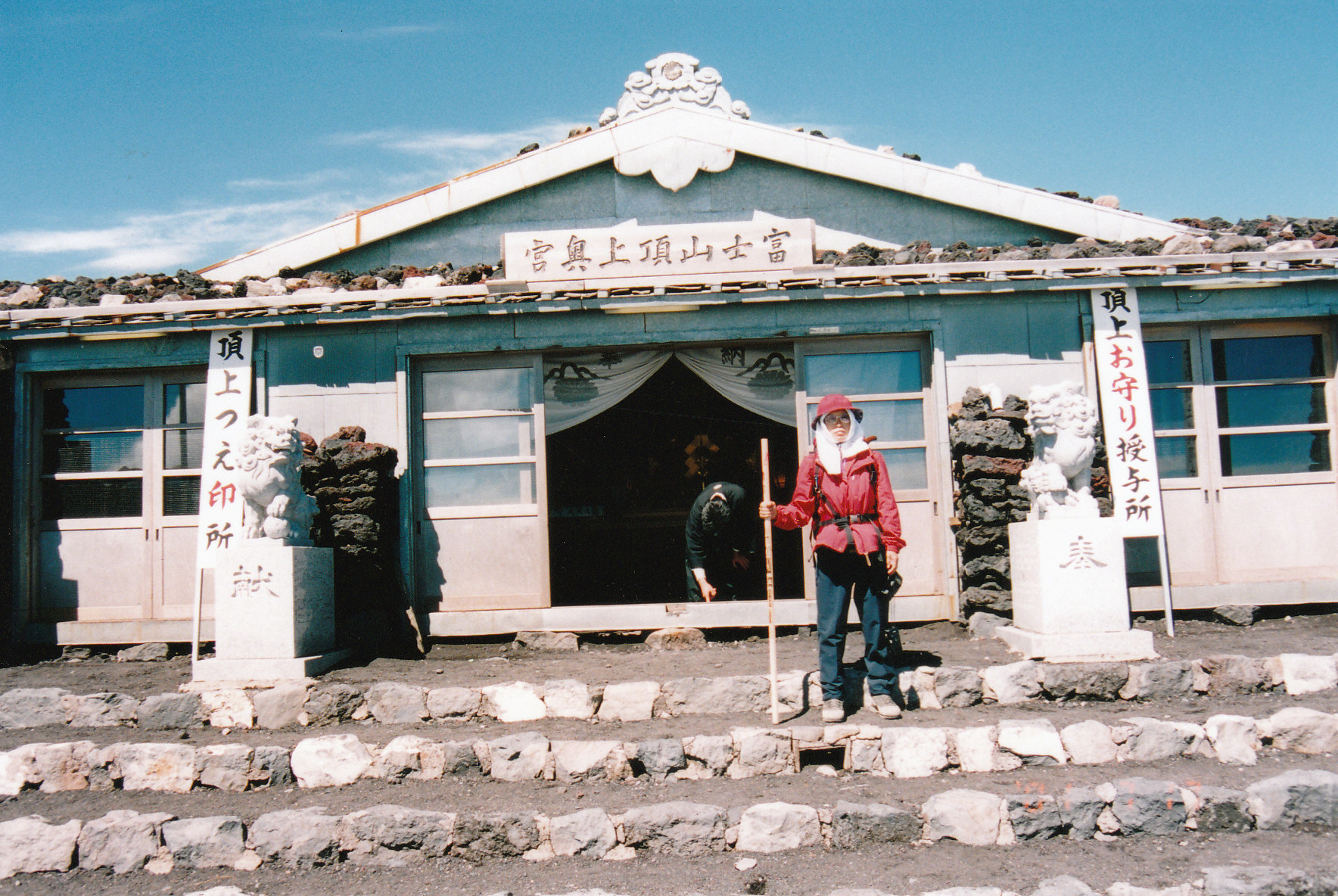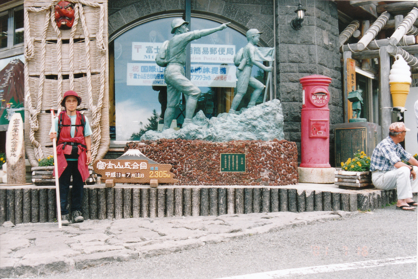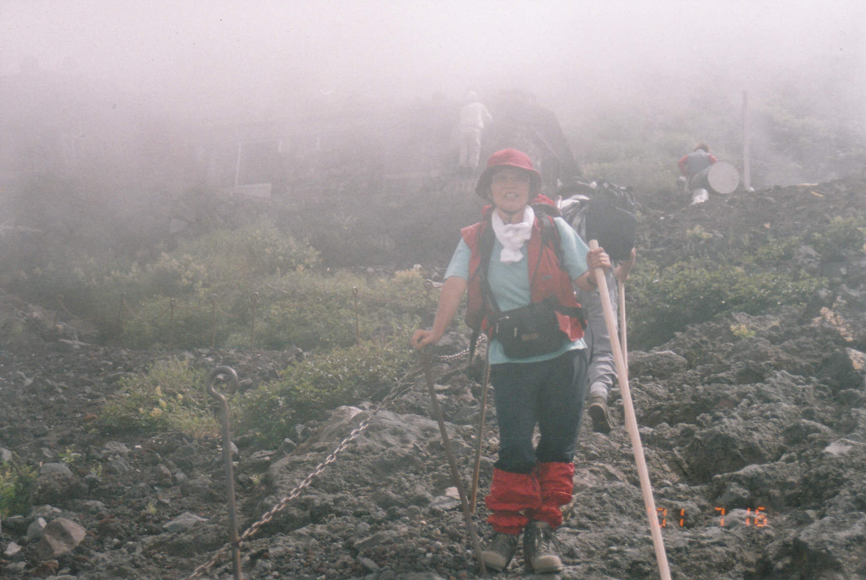 | 余り山登りをしない人でも一度は富士山に登りたいと言いますが妻もご多分に洩れず「一度は登りたい」とリクエストしましたので二人で登りました、私は丁度40年前村の青年団で登りましたので2回目です。 新宿駅西口から高速バスで直接吉田口5合目に行きました、高度順化の為5合目で1時間以上周辺をぶらつき昼食を食べて正午過ぎに出発しました、お天気はよく大勢の人で賑いました。 6合目で一休みしていよいよここからはザレやガレの歩きずらい道になりました、途中同郷の70歳くらいのおばぁちゃんに会いましたが「毎年主人と登っていたけど今年は主人が体調を崩したので一人できました」と言って景色を眺めながらゆっくり登っていました。 私達もゆっくり登って7合目の「鳥居荘」(15:00)に着きました、高度順化の為ここで泊まることにして旅装を解き小屋前のテラスで休んでいたらNHKの富士登山番組の撮影隊が登ってきました、その中に登山家の田部井淳子さんがいましたので一緒に写真を撮ったりお話を聞いたり楽しい一時を過ごしました。 超満員の宿泊者が夜中の12時頃一斉に起きだしたので私たちも起きて3時頃小屋を出発しました、8合目の中ごろで日の出を迎え朝食弁当を食べてゆっくり登りました。 頂上に着いて浅間大社にお参りしてお鉢巡りをしました、ところがあれだけ高度順化の為に時間をかけて登ったのに妻が高山病に罹り頭痛や吐き気を模様し昼食も食べられないので急いで下山(12:00)しました。 下るに従って妻は元気になりましたが今度は私が「膝が笑って」普通に歩けず難儀しました、途中6合目で道に迷ったりしましたが何とか出発地(5合目)に着き今日の宿忍野八海の民宿「鱒の家」にバスで向かいました。 翌朝早起きして朝食前に忍野八海を散策しました、その後近くのバス停から高速バスで帰路に着きました。体調のトラブルがありましたが日本一高い富士山に登ったことは貴重な経験でした、然し妻は「二度と登らない」と言っています。 |
