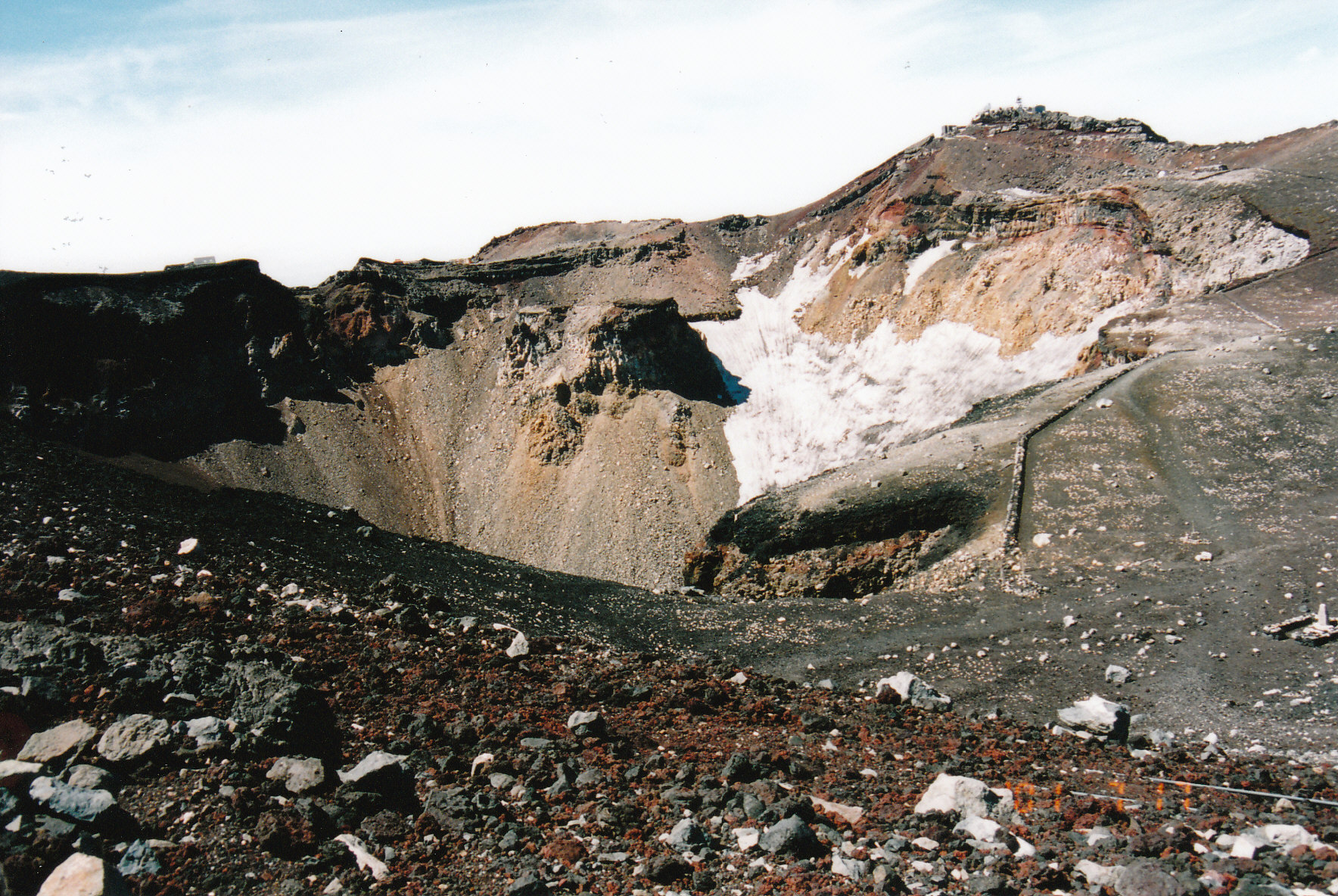 | 8合目(3400m)の山小屋 | 山頂入口の鳥居 | 富士山頂にて | 吉田口山頂の奥宮にて | 頂上噴火口(1) | 頂上噴火口(2) |