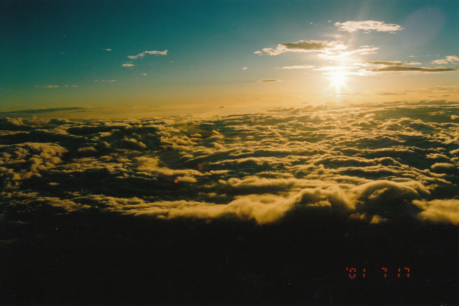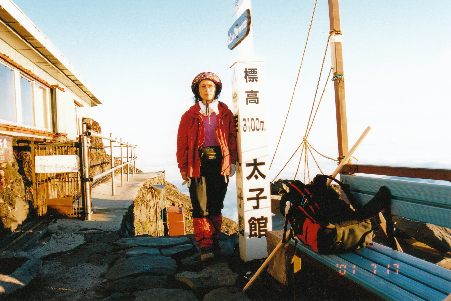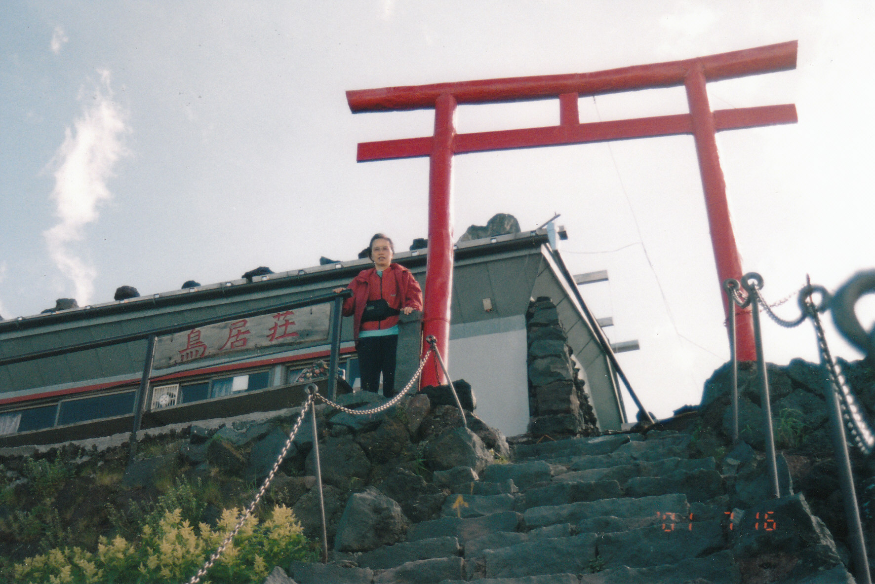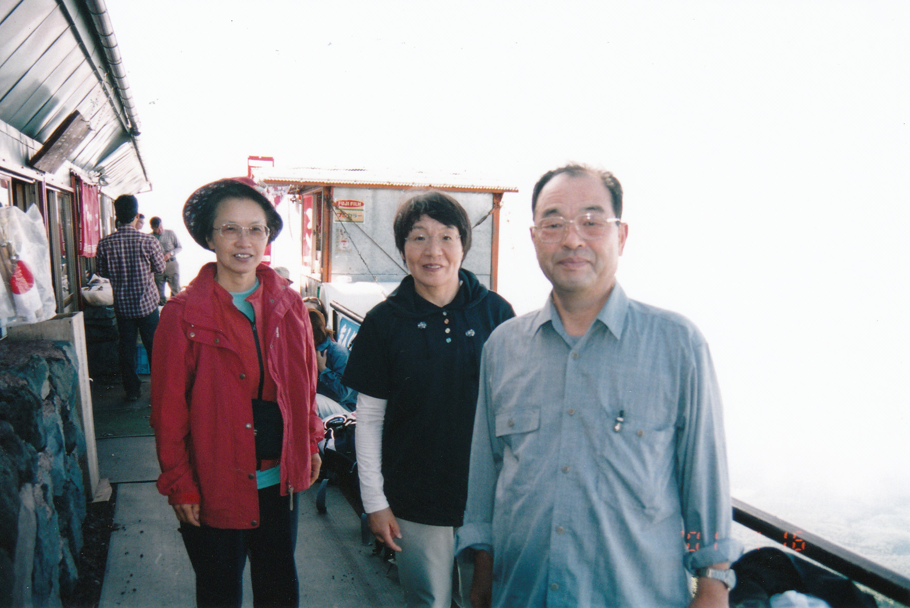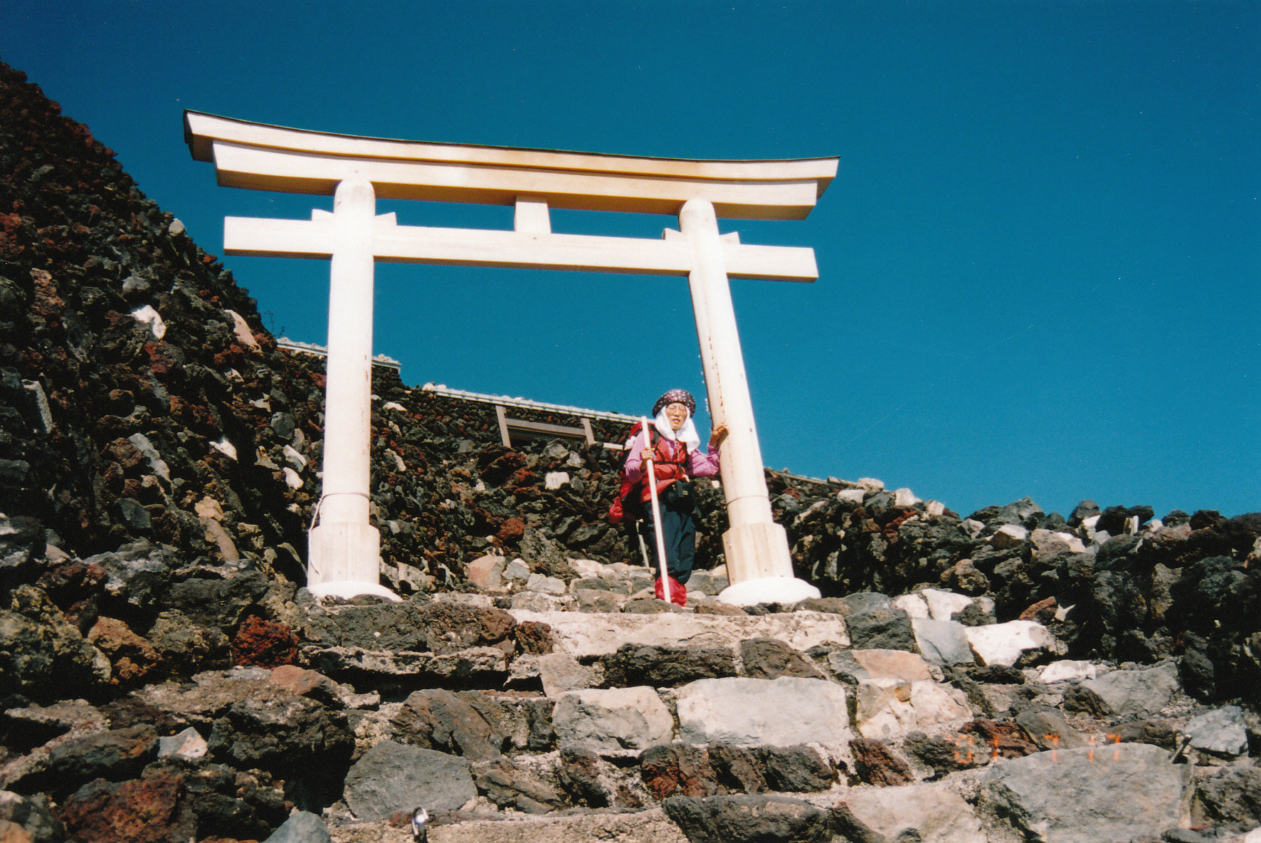 | 鳥居荘と鳥居 | 鳥居荘にて | 登山家田部井淳子さん(中)と | 雲間から麓の町を俯瞰 | 8合目の雲海と日の出 | 8合目(3100m)の山小屋 |