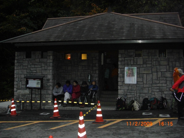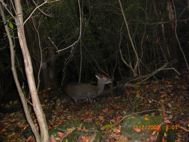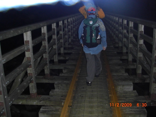 | 朝5時荒川登山口トイレ | 暗い中トロッコ道を行く | 小杉台小学校跡で朝食 | 小型の屋久鹿 | 8kmのトロッコ道を行く |