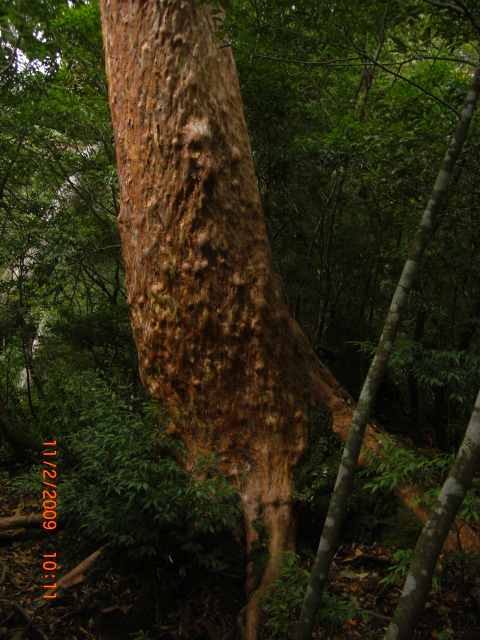 | 仁王杉の巨木 | 縄文杉の幹 | 縄文杉前の展望台にて | 元で分岐の夫婦杉 | 「ヒメシャラ」サルスベリ科 の巨木 |