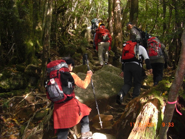 鬱蒼とした原生林の中千年以上の杉が至る所にあり圧倒されました、この様な悠久の空間に入ると人生観が変わります良い経験をした意義ある登山でした。