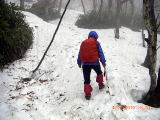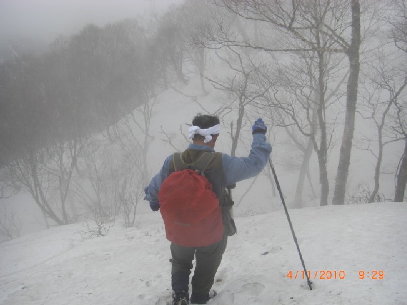 | 深雪に埋まった峠の神社 | 深雪に埋まった旧街道 | 霧の中方向を確認 | 岳樺林の雪原 | 妖怪封じの大般若塚 |