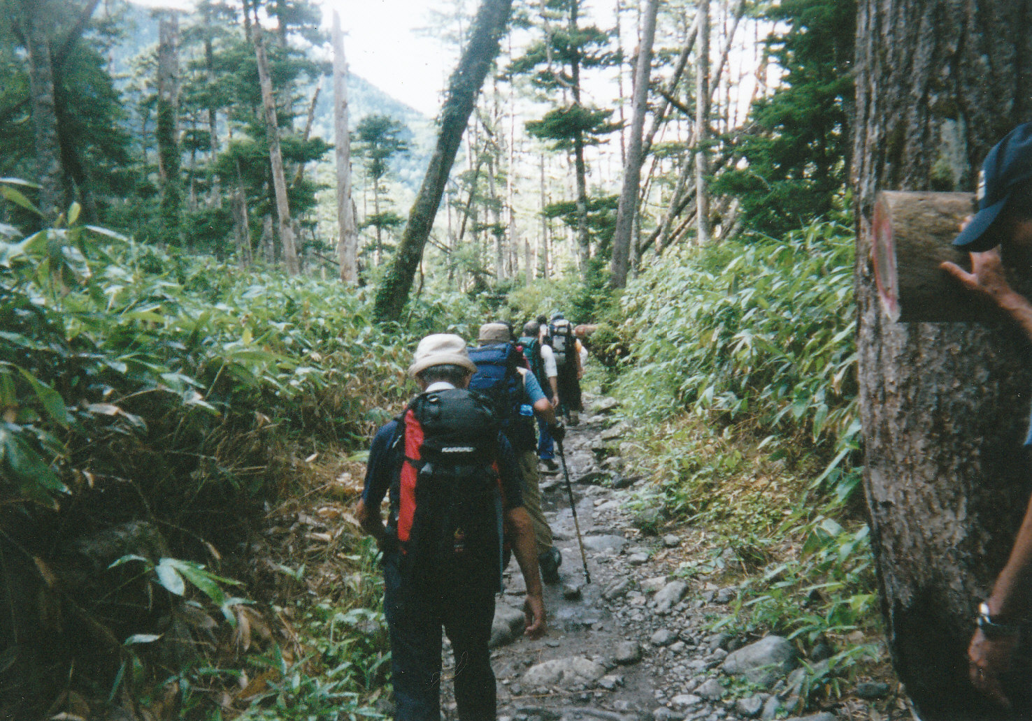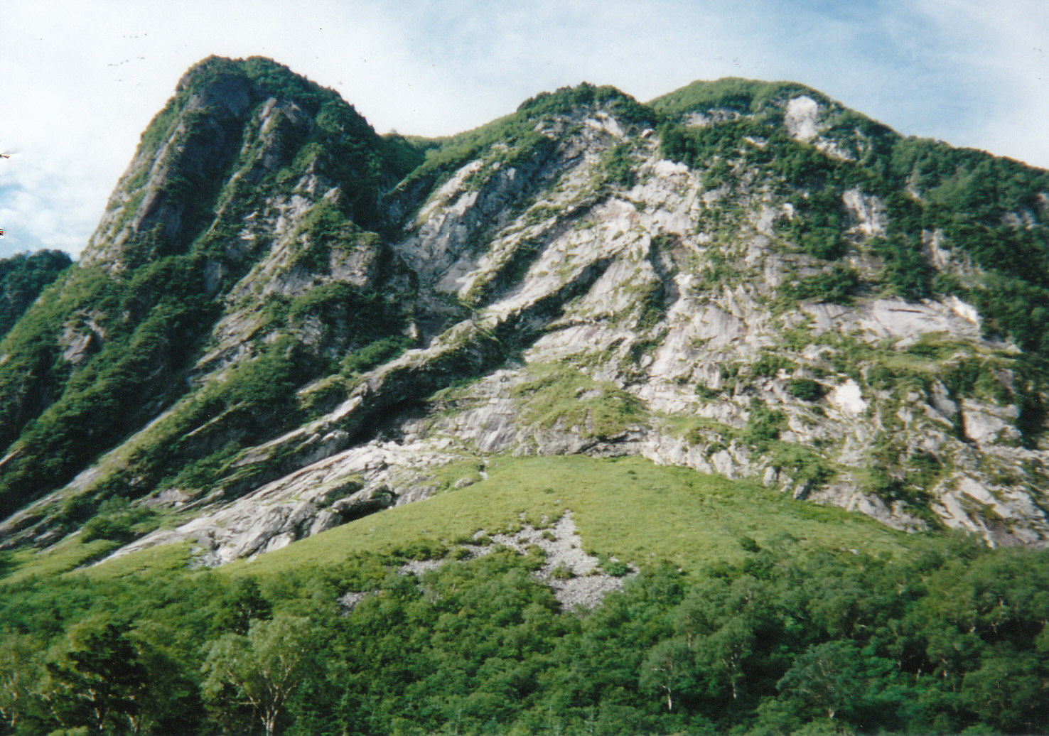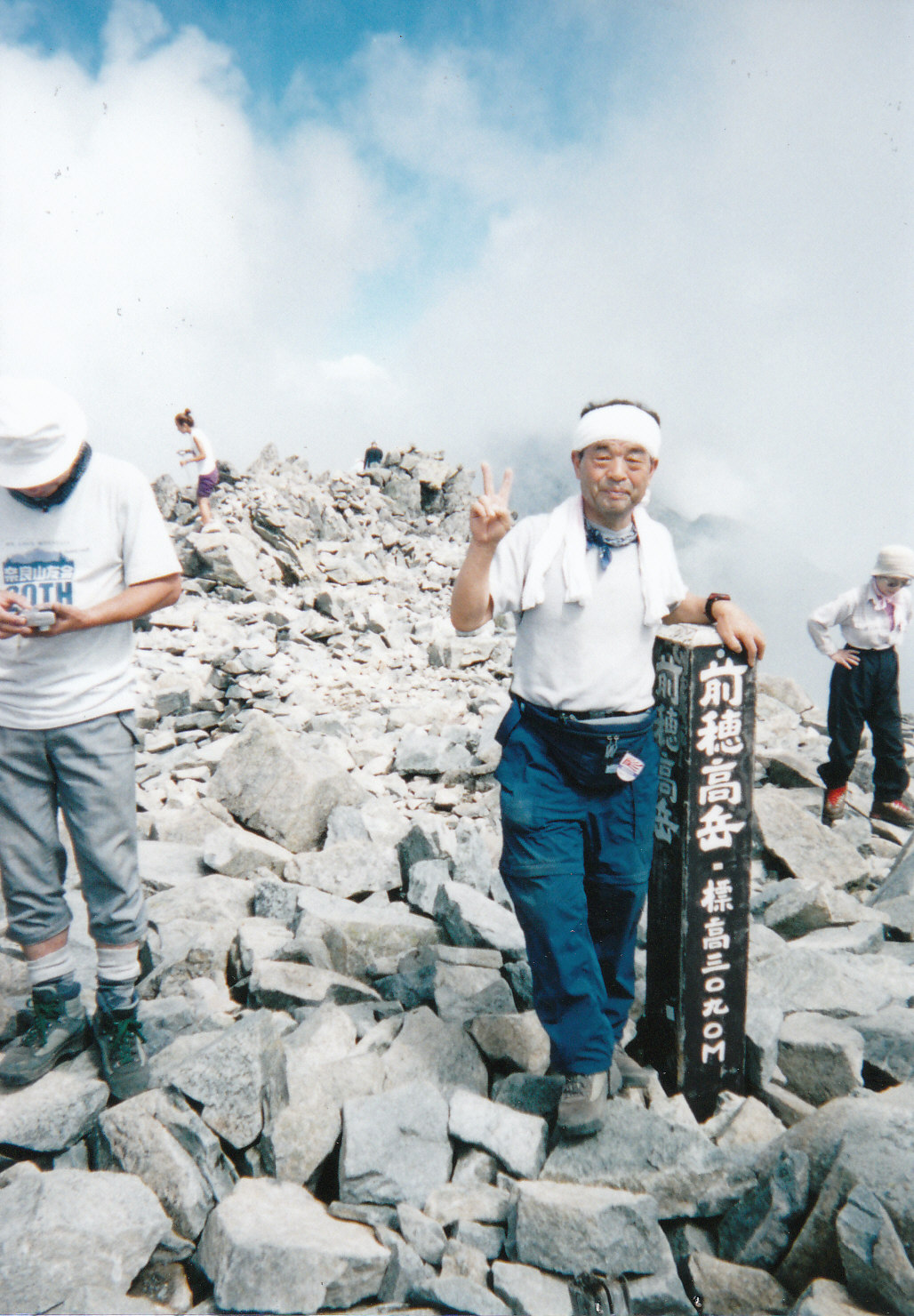 | 日本第三(北アルプス最高峰)の高峰「奥穂高岳」に登ることは憧れでした。ザイテングラードが多少不安でしたが思い切ってツアーに参加しました。 初日は上高地から梓川沿いに殆ど平坦な道を3時間余り歩いて「横尾山荘」に行きここで一泊、新装なったばかりの山荘は立派な風呂もありちょっとしたホテル並みでした。 翌早朝、山荘前の「横尾大橋」を渡り横尾谷沿いの緩やかな道を行くと左に有名な「屏風岩」が現れ更に進むと1時間程で「本谷橋」に着きました、、ここで小休止、ここからが急登の本格的な登山道です。 結構長い急坂を何度か小休止しながら登ると突然開けて涸沢カールの末端に出ました、ここからガレ場の中を歩き「涸沢ヒュッテ」に着き昼食休憩して今晩の宿「穂高岳山荘」に向かいました。 「涸沢小屋」の前を通って暫く登リカールをトラバースしてザイテングラードに取り付きました、落ち着いて「三点支持」でゆっくり登り全員無事「穂高岳山荘」に着きました、その晩は皆で缶ビール一本で乾杯し早く休みました。 翌早朝、ザックは山荘にデポして水、カッパ、行動食をサブザックに入れ出発しました、いきなり殆ど垂直の岩壁を鉄梯子で登りガレ場をトラバースして頂上に登り着きました、360度のパノラマを楽しみ次に吊り尾根を渡って前穂高岳に向かいました。 両脇が切れ落ちたガレ場を慎重に歩き2ヶ所の長い鎖場を下って紀美子平に着きました、ここへザックをデポし空身で前穂高岳の頂上を目指しました、頂上で小休止した後紀美子平に下り再び吊り尾根を通って「穂高岳山荘」に帰りました。 山荘で遅い昼食を摂って再びザイテングラードを下りカールの雪渓をトラバースして三泊目の「涸沢ヒュッテ」に着きました、「ヒュッテ」の名物「おでん」と生ビールで乾杯しました。 翌朝「ヒュッテ」を出発し6時間かけて上高地に帰り着き、チャーターバスで沢渡(サワット)のホテルで汗を流し昼食を摂って帰路に着きました。 |