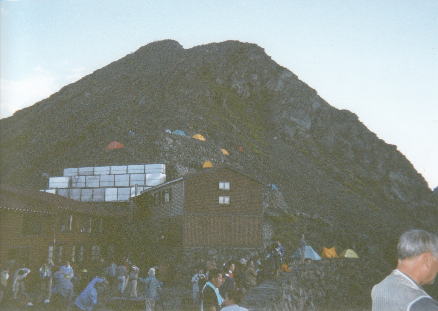| 涸沢カールのテント村 | 涸沢岳と涸沢槍 | 二拍目宿「穂高岳山荘」 | 山荘から見る早朝の涸沢岳 | 早朝、山荘を出発 | 早朝、岩場を登る |