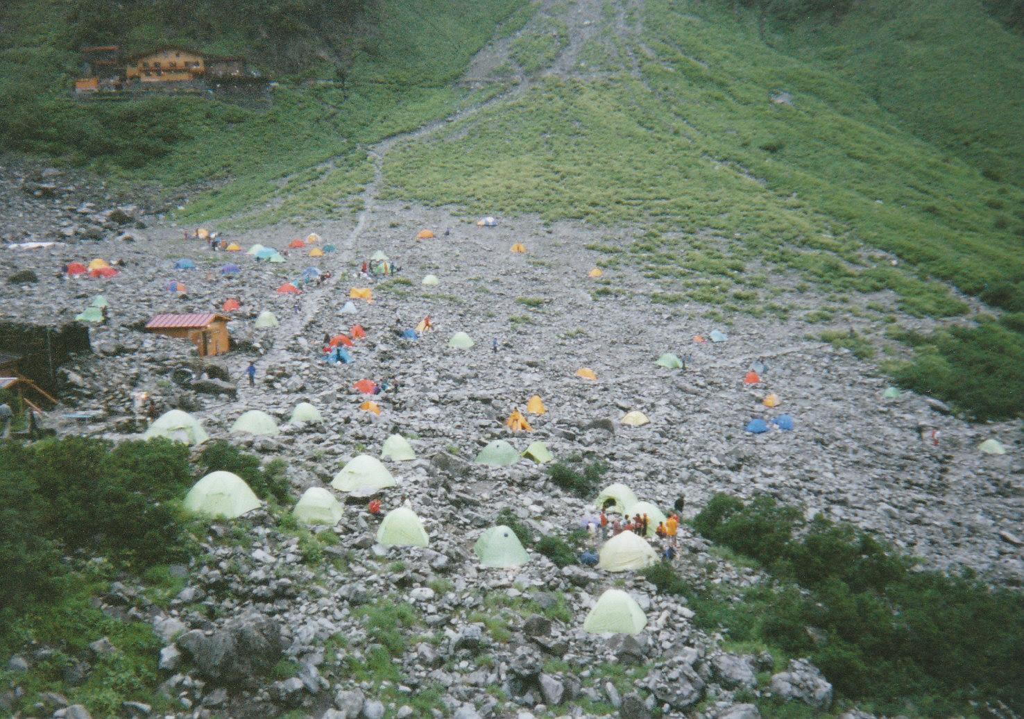 | 一泊目宿「横尾山荘」 | 横尾谷登山道を往く | 左に屏風岩を見て | 本谷橋を渡る | 三拍目宿「涸沢ヒュッテ」 | 涸沢ヒュッテから見るカール |