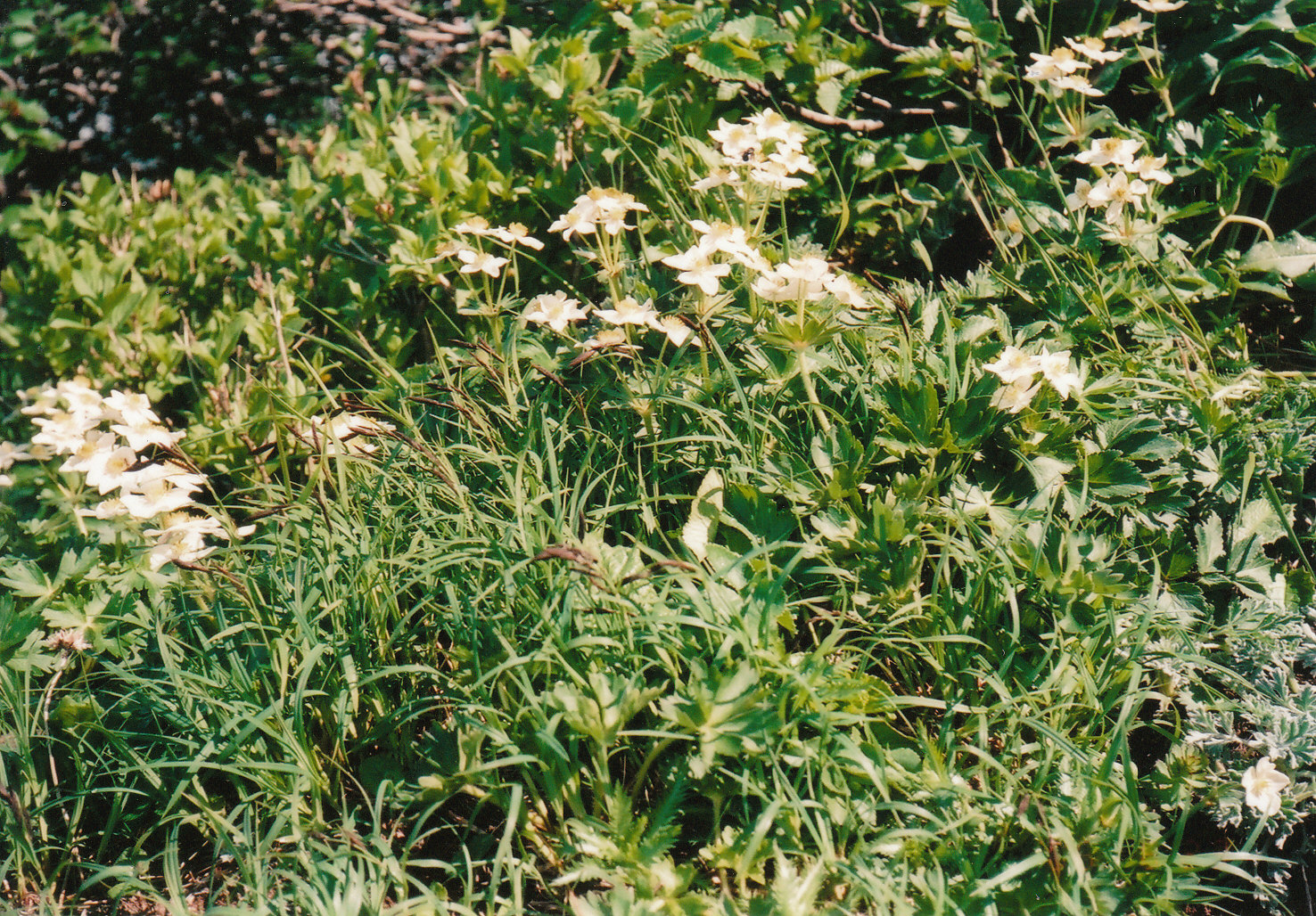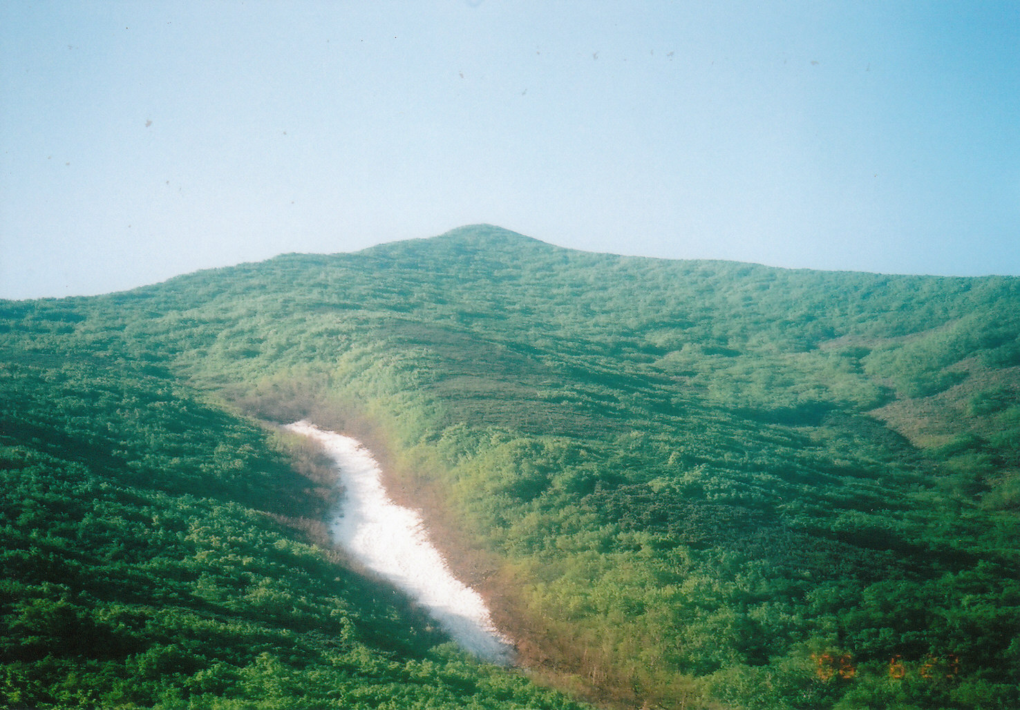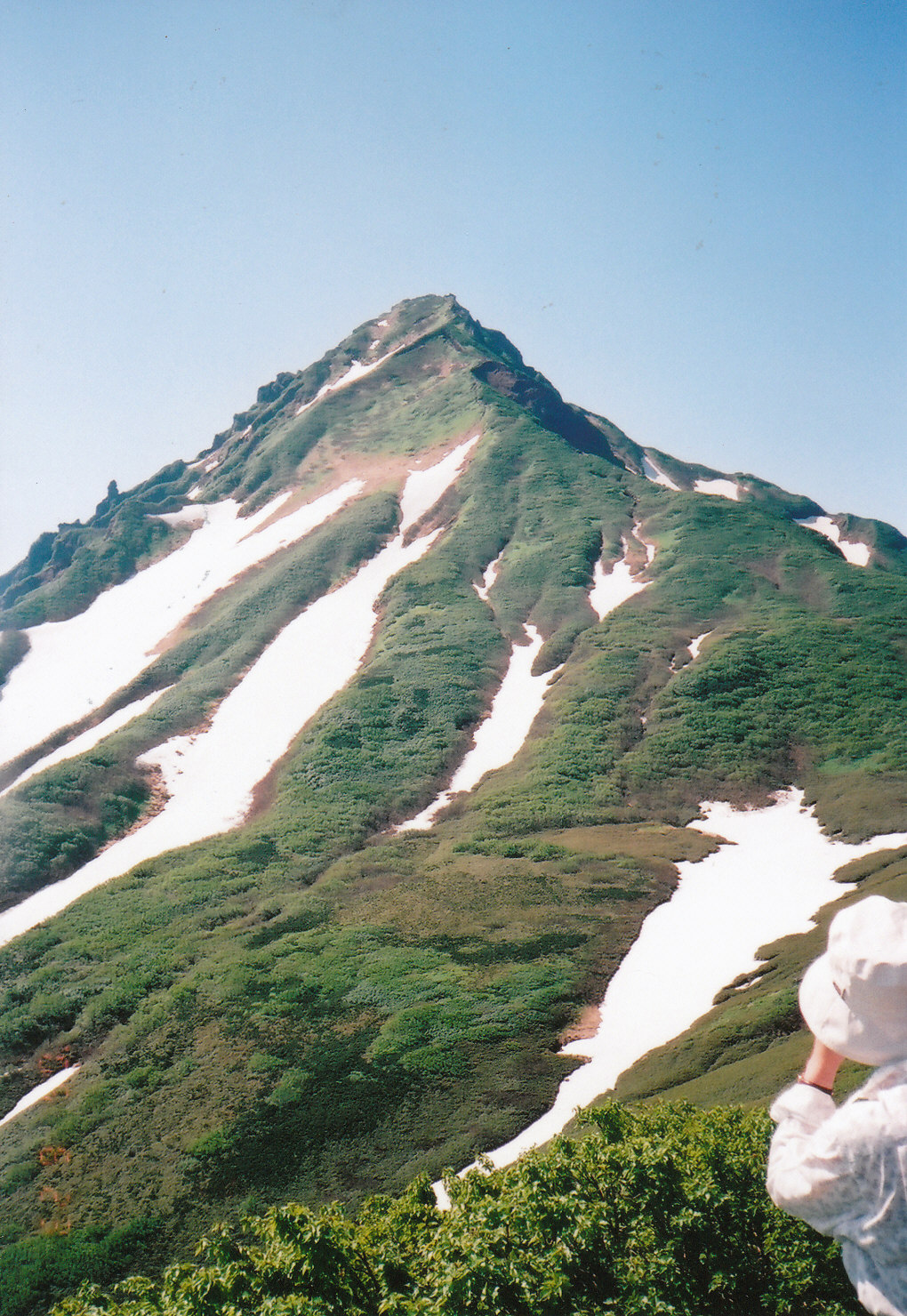 | エゾノハクサンイチゲ | チシマフウロウ | エゾイチヤクソウ | 頂上直下から振り返る | 頂上直下の雪渓 |