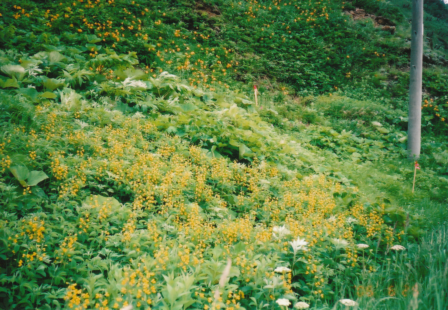 | 8合目長官山(1218m) | ボタンキンバイ | 頂上直下のザレ場を登る | 利尻岳頂上(1719m) | イワベンケイ |