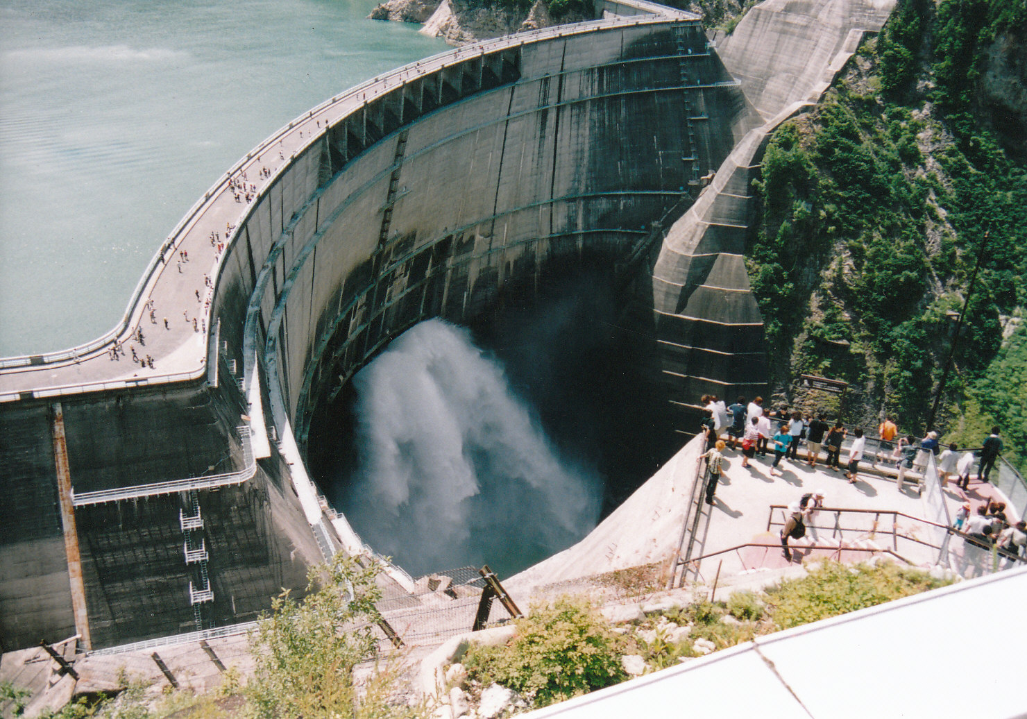 | 立山玄関口「扇沢駅」 | 黒部ダムの放水 | 黒部ダム展望台 | 黒部ダム堰堤にて | 黒部平にて | 大観峰から見た黒部湖 |
