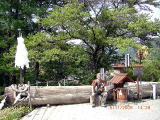 諏訪大社秋宮本宮前 | 宿 国民宿舎「山王閣」 | 下諏訪駅ホーム展示の 御柱 |