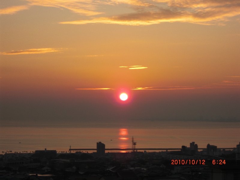 | マタエから見た西峰 | 頂上から見た湯布院市街 | 由布岳東峰頂上にて | 頂上から見た山並み | 宿の窓から見た「日の出」 | 2泊目宿「かんぽの宿別府」 |