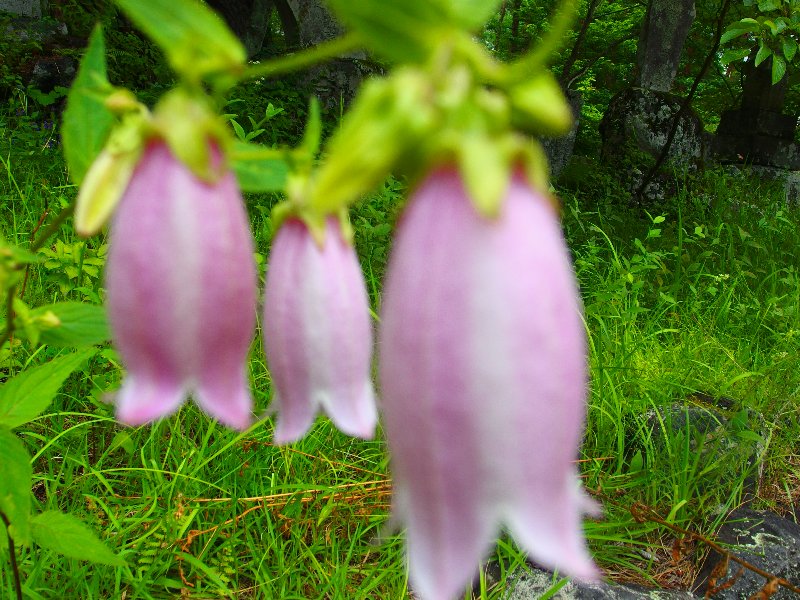 | 今が盛りのホタルブクロ | 二合目に到着 | 三合目に建つ茶屋の廃屋 | 四合目大黒屋跡の説明板 | 五合目佐藤小屋に到着 | 御中道入口の道標石碑 |