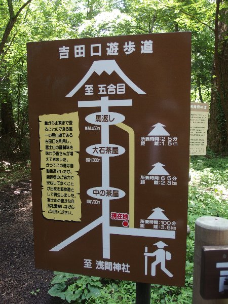 | 北口本宮浅間神社 | 富士講の「宿坊」御師の家 | 遊歩道(昔道)の案内板 | コケモモ | 立派になった「中の茶屋」 | 馬返しに建つ富士嶽石碑 |