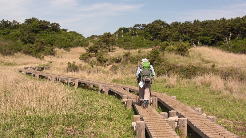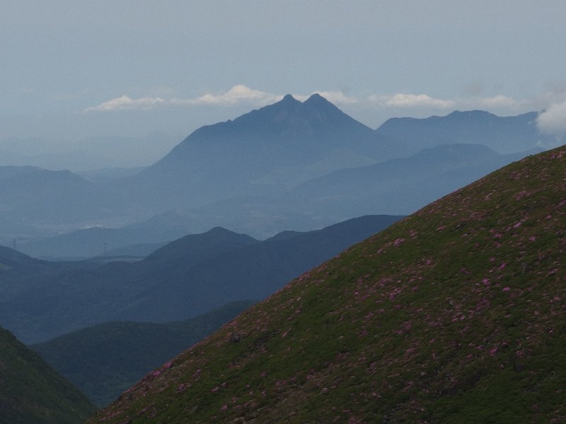 | 久住山のミヤマキリシマを愛でる山旅のきっかけは今から二十数年前旅行で大分県に行った時どこかの山の山腹をバスで通った時バスの窓から一面ピンク色に染まった山肌を見て強い印象を受けて以来是非間近で見てみたいとの気持ちが常に頭の隅にあったのです、因みにその時土産店からミヤマキリシマの鉢植えを一個5,000円で買ってきましたが一ヵ月で枯らしてしまいました。 その後山登りを始める様になってから何時かミヤマキリシマに会いに行こうと思っていた折り去年TV放送を見て行くことにしたのですがたまたま熊本地震で行けなくなって今回のリベンジ山行となった次第です。 |