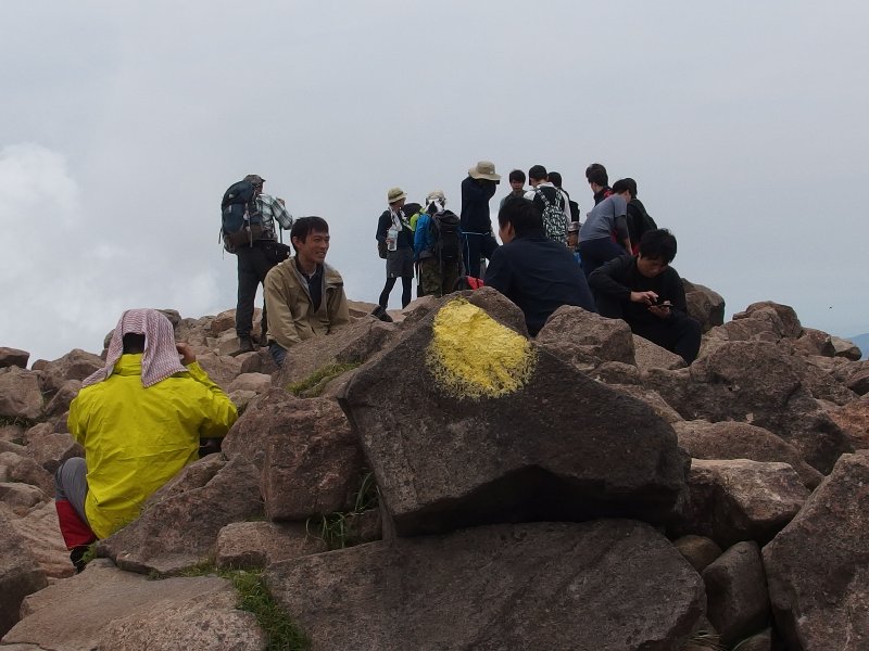 | 頂上で寛ぐ登山者達 | 頂上から眺める由布岳 | ハルリンドウ | 白口岳頂上にて | 2泊目・法華院山荘 | ドウダンツツジのトンネル |
