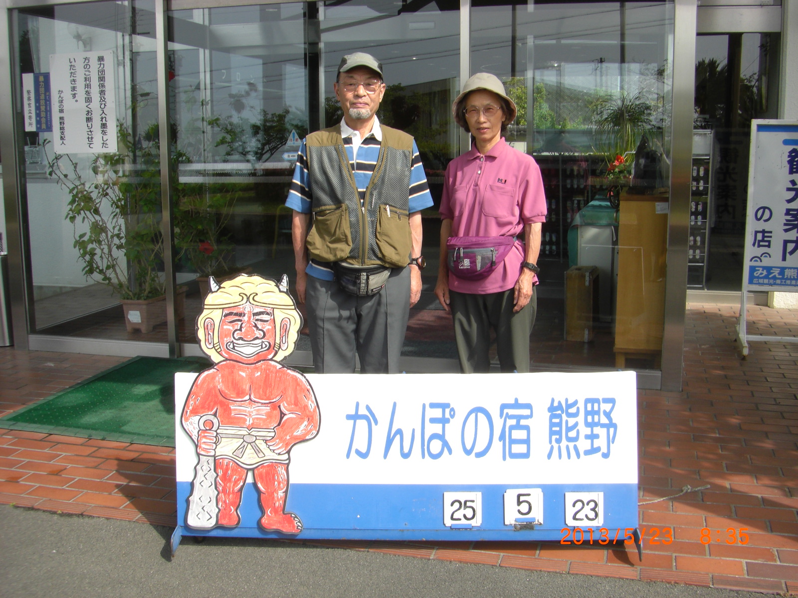 | 大斎原の巨大鳥居 | キンラン | 小栗判官物語の「つぼ湯」 | 那智大社本殿 | 那智の滝 | 最終宿「かんぽの宿熊野」にて |