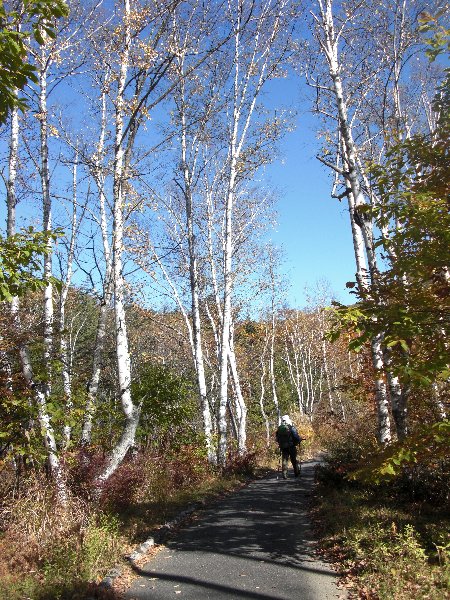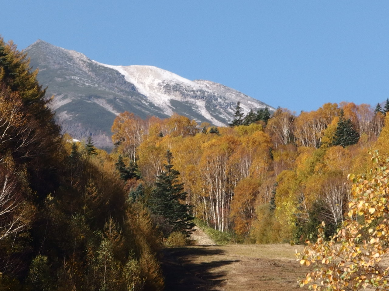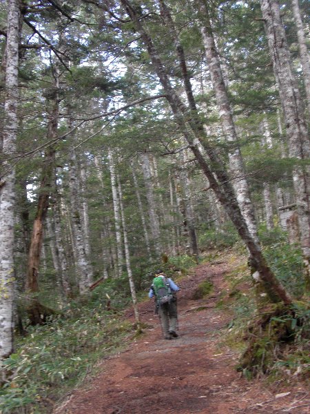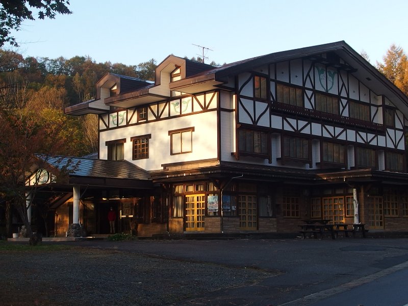 | 乗鞍高原玄関口・新島々駅 | 乗鞍観光センター | 前泊宿・鈴蘭小屋 | 鈴蘭小屋玄関にて | 休暇村から眺めた乗鞍岳 | 白樺林を行く |
