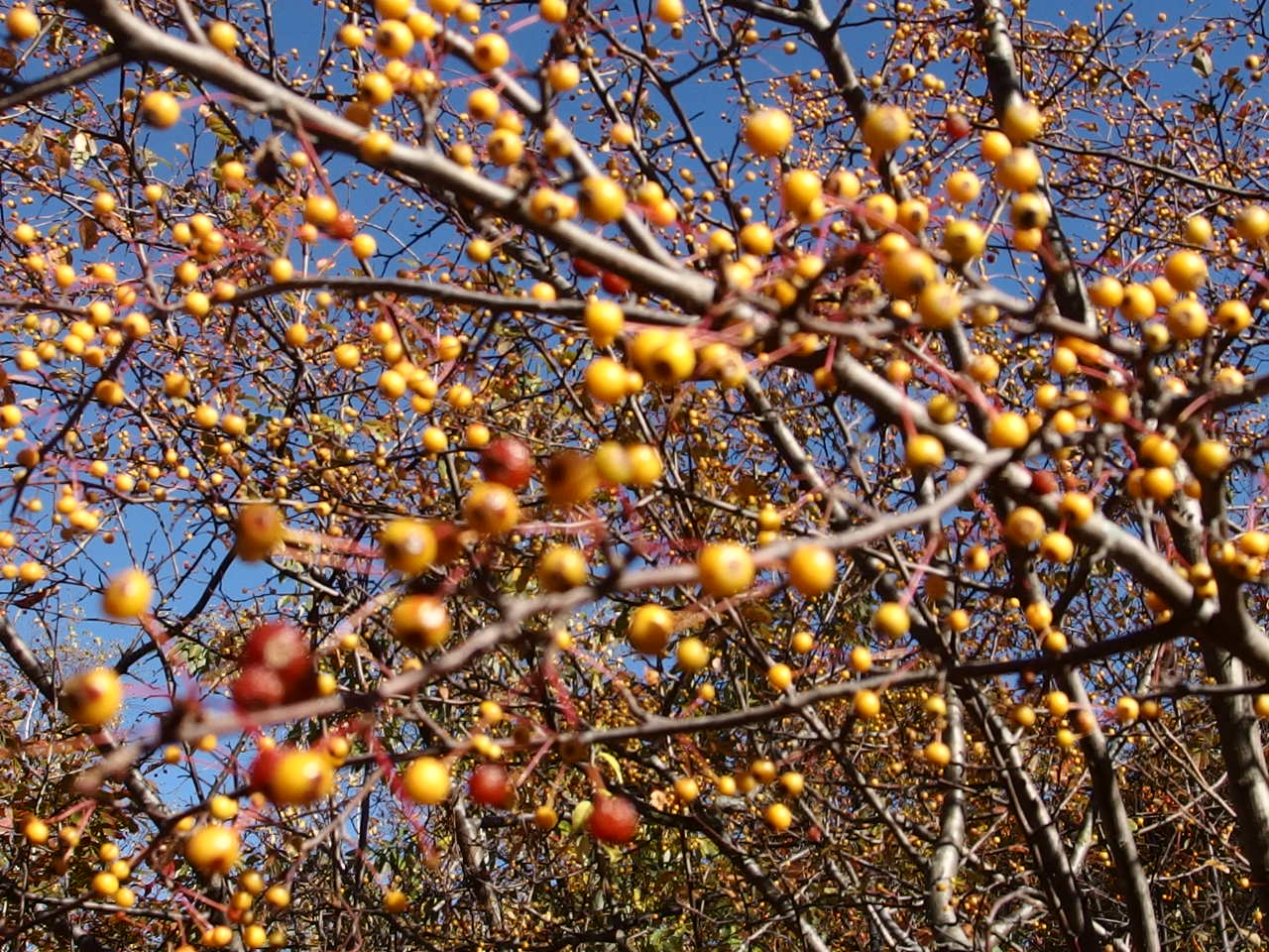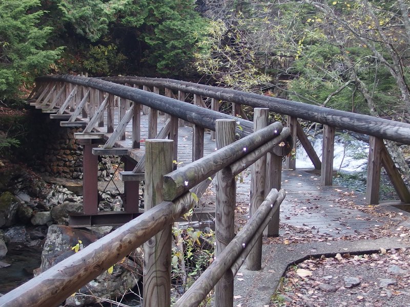 | ホサキヤドギリの実 | 吊り橋を渡る | 紅葉その(3) | 休暇村入口にて | 見晴台から眺めた景色 | 熊除けの金属パイプを叩く |