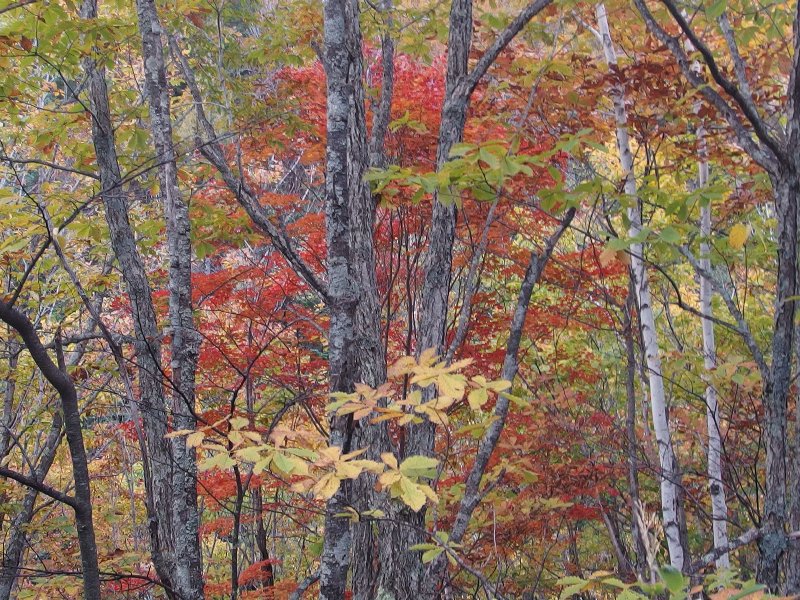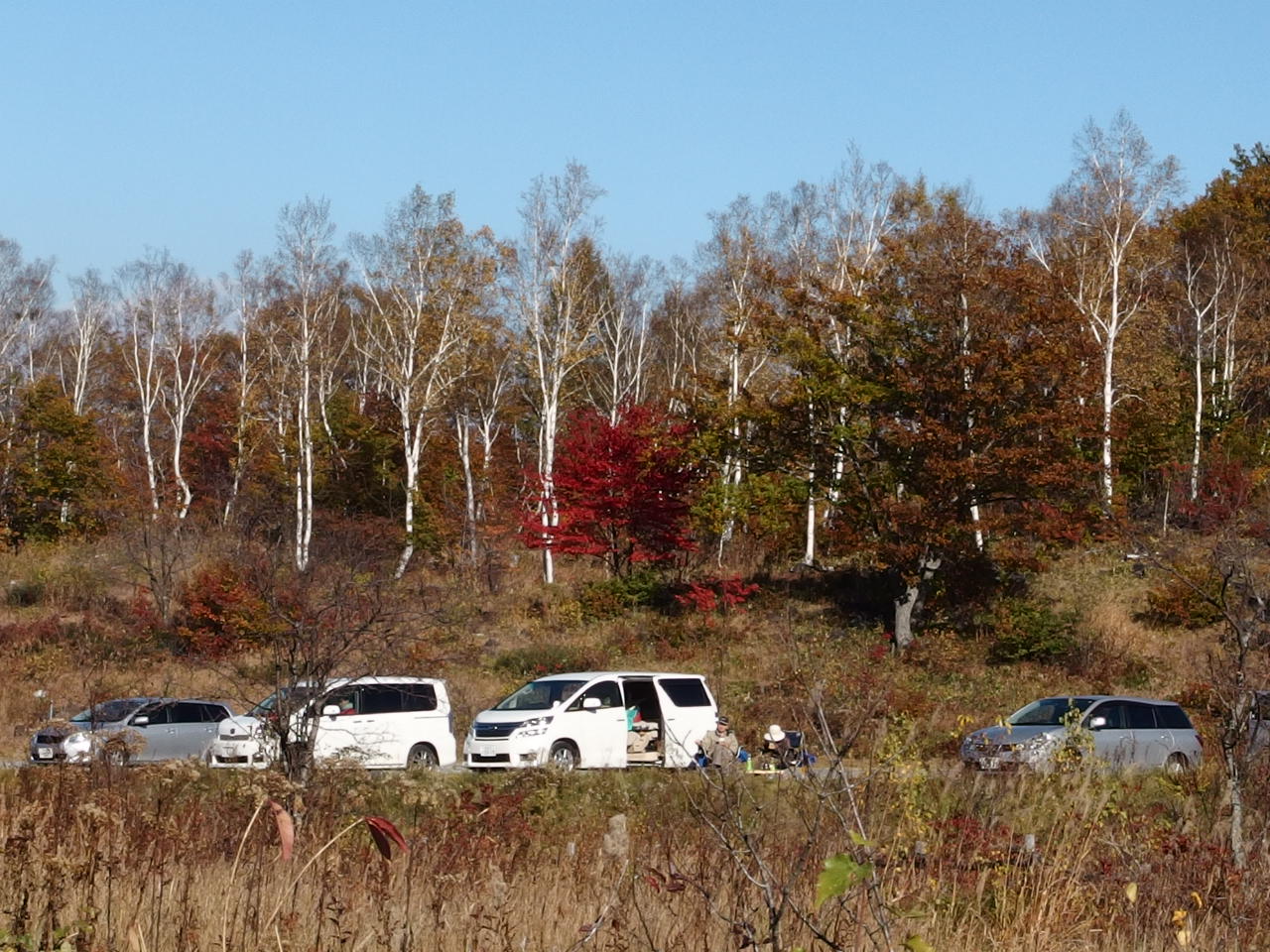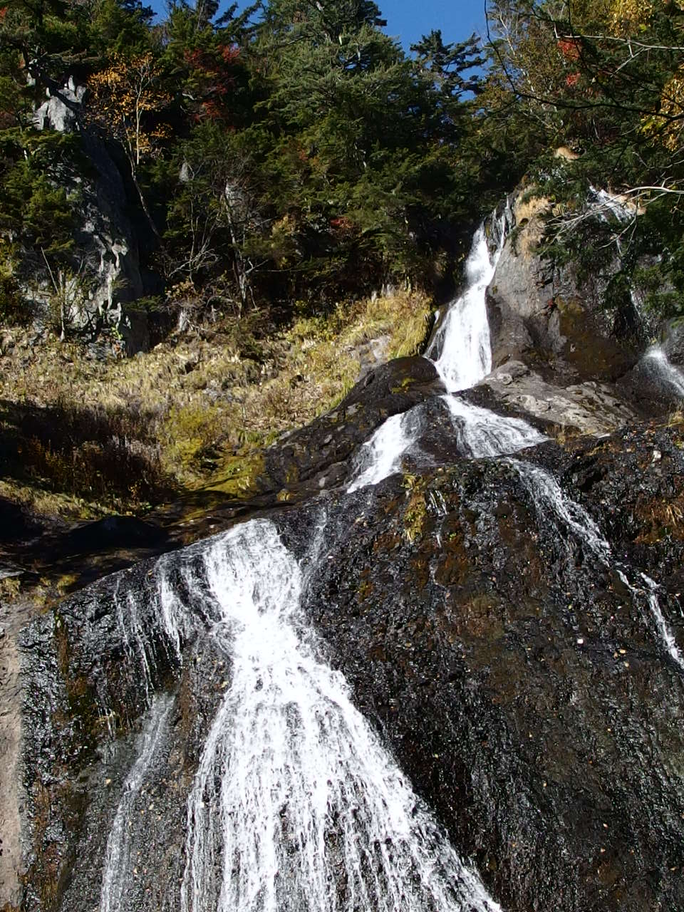 | 白樺と紅葉の道を行く | 善五郎ノ滝 | 紅葉その(1) | 白樺林を背にした駐車場 | 豪快に流れる三本滝 | 紅葉その(2) |