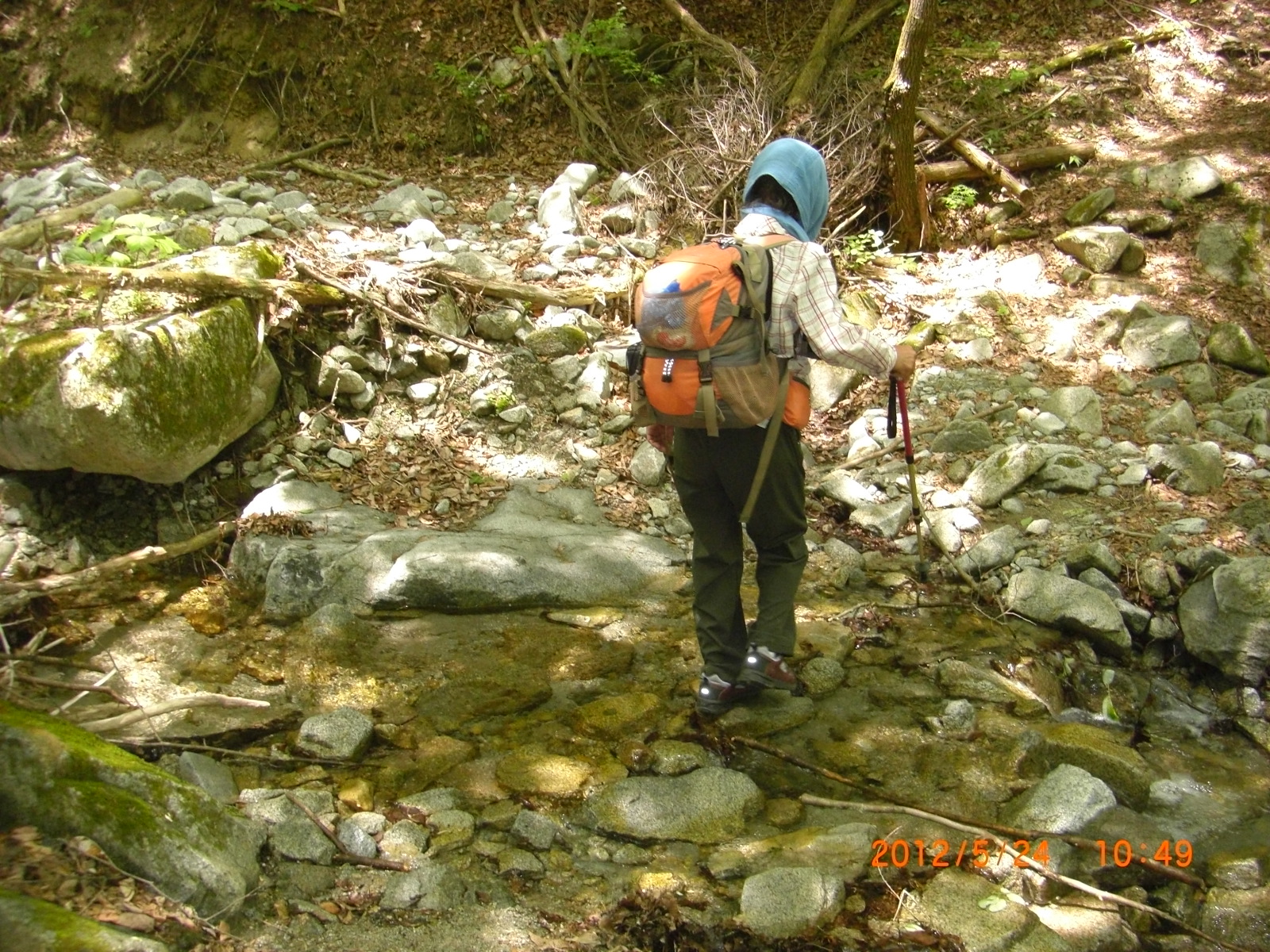 | 笹子沢川を徒渉 | 旧街道沿いの甘酒茶屋跡 | 県天然記念物「矢立の杉」にて | 地蔵菩薩に参拝 | 旧街道の「笹子峠」 |