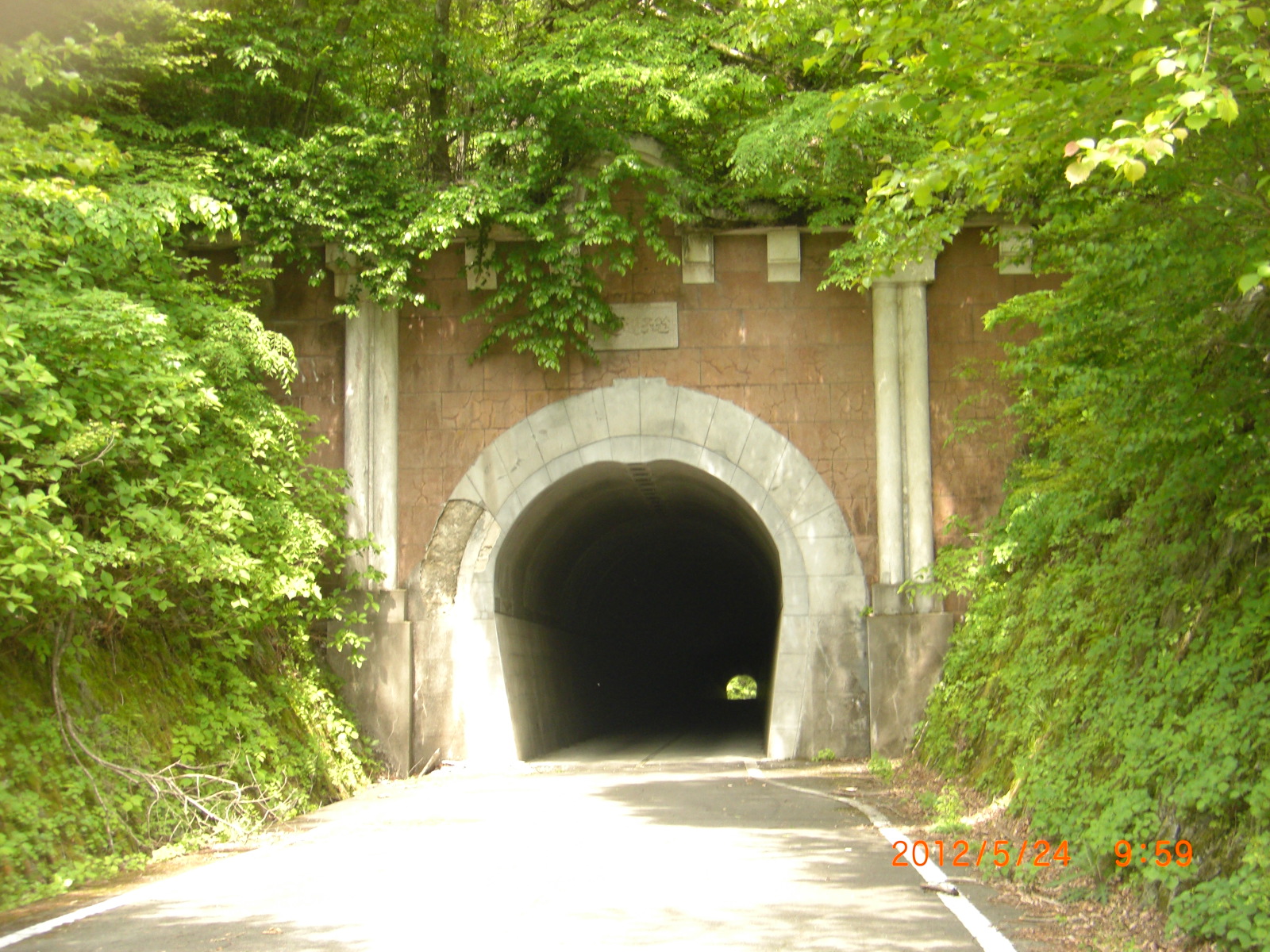 | 杉林の旧街道を行く | 旧街道脇に立つ馬頭観音 | 旧 街道沿いに咲くフタリシズカ | 一等水準点D(899m) | 国登録文化財「笹子隧道」 |