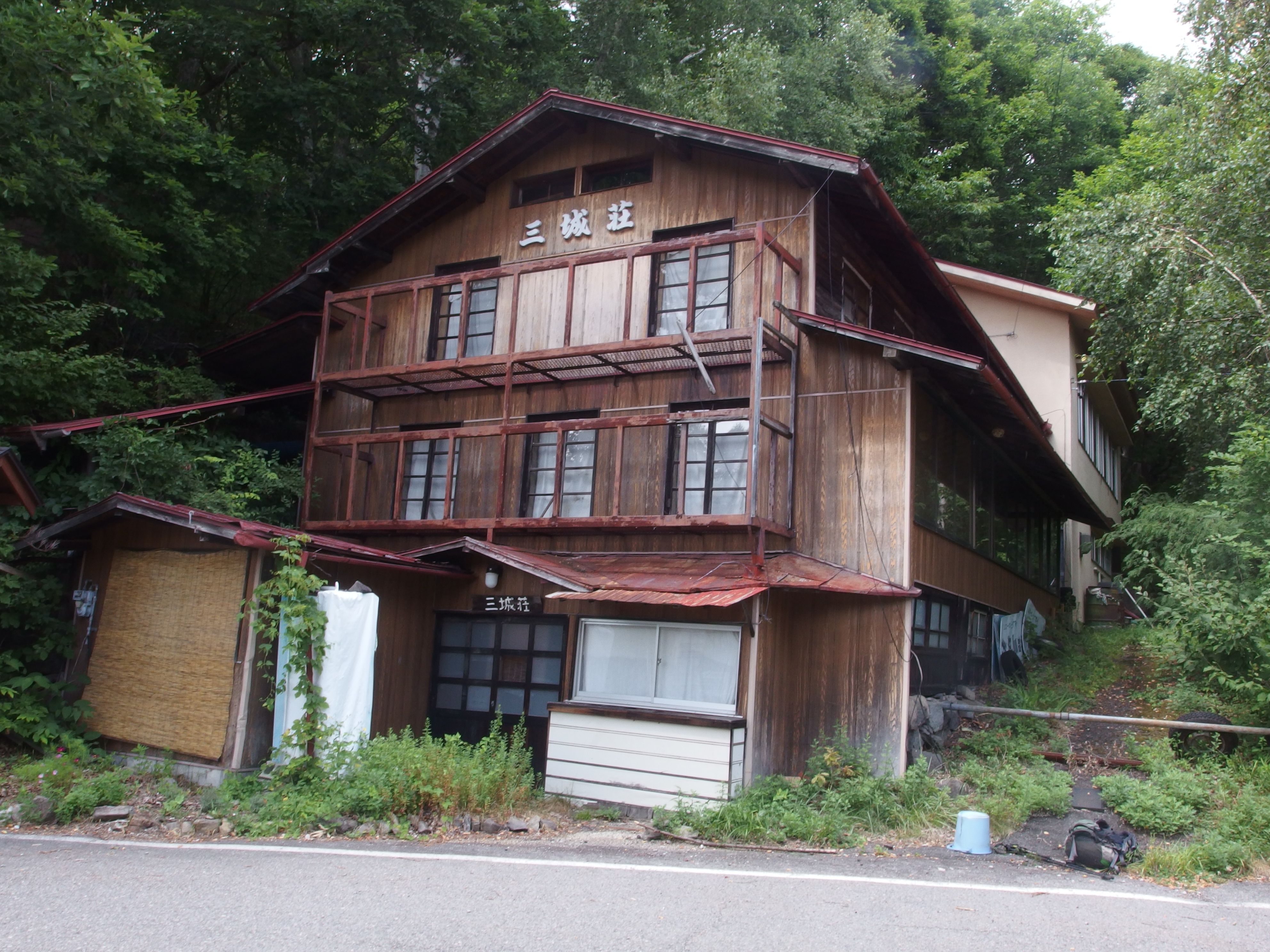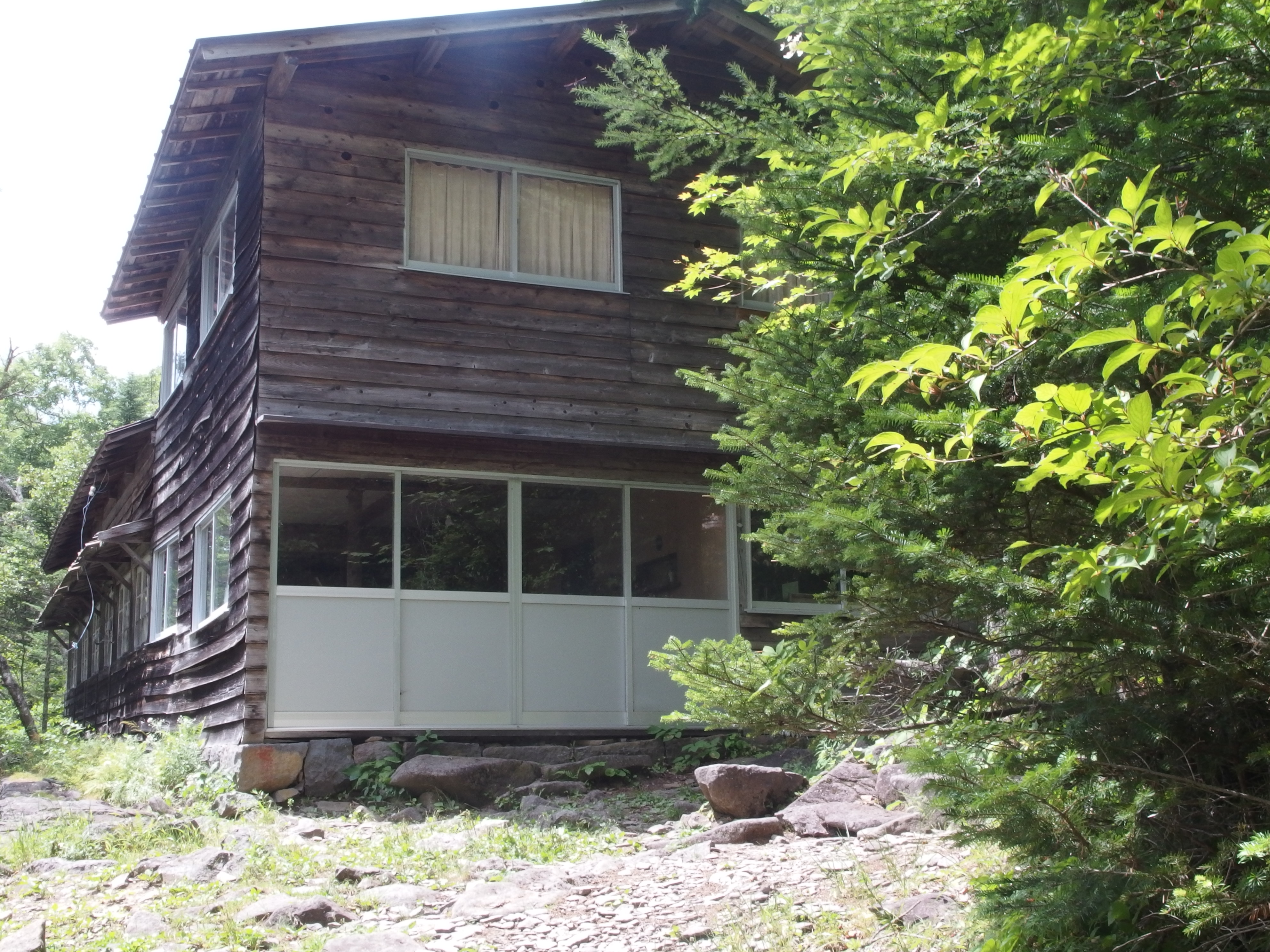 | 登山口の三城荘 | ゴーロ道を登る | コオニユリ | 中腹に建つ山小屋 | キバナヤマオダマキ | 断崖の巻道 |