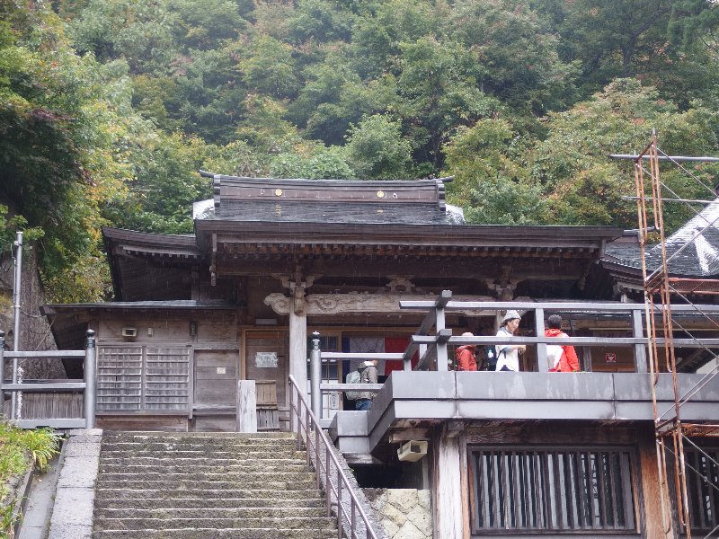 | RP駅展示の山そり | 蔵王温泉街の紅葉 | JR山寺駅前にて | 山寺の根本中堂 | 山寺境内の芭蕉銅像 | 山寺奥の院 |