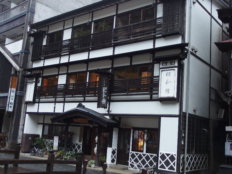 | 奥の院からの景色 | 銀山温泉街の夜景 | 朝の銀山温泉街 | 旅館「昭和館」 | 銀山温泉シャトルバス | 昭和館玄関前にて |