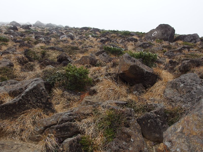 | Ⅱ△「熊野岳」 | 熊野岳頂上にて | ゴーロの急斜面 | 地蔵山頂上にて | 頂上直下の御地蔵様 | 開運の鐘を鳴らす |